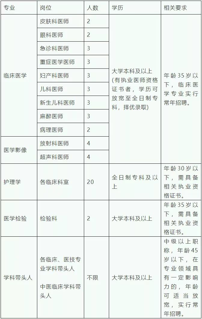 (臨床醫(yī)學、醫(yī)學影像專業(yè)及學科帶頭人實行常年招聘)