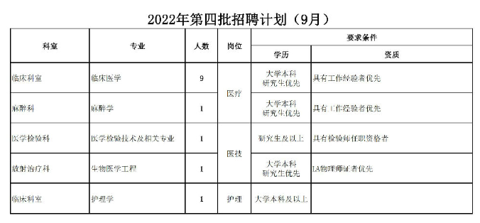 (二)醫(yī)院長期招聘高層次人才,有意者可隨時聯(lián)系,不受專業(yè)名額限制,具體情況面談。