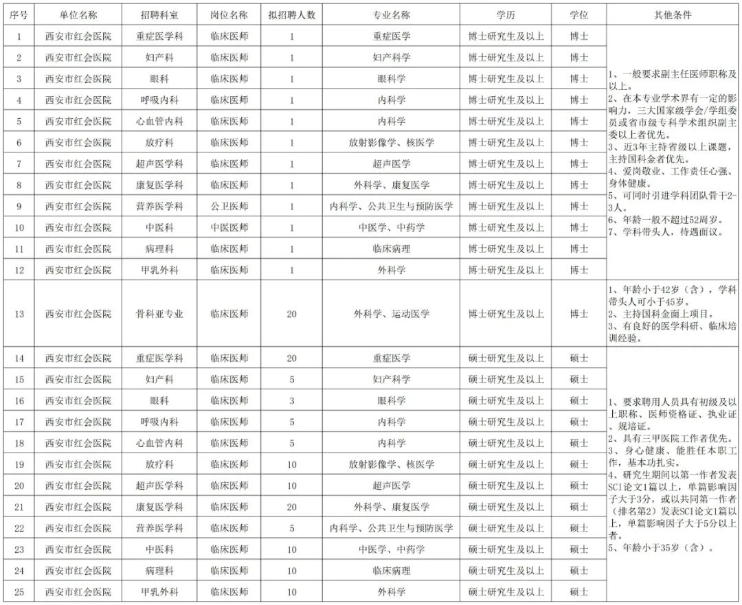 陜西省西安市紅會醫(yī)院2022年招聘工作人員145人