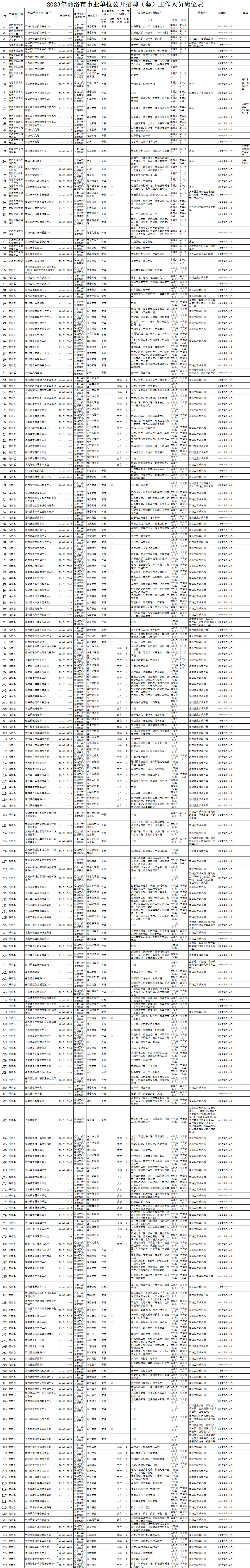 1.2023年商洛市事業(yè)單位公開(kāi)招聘(募)工作人員崗位表