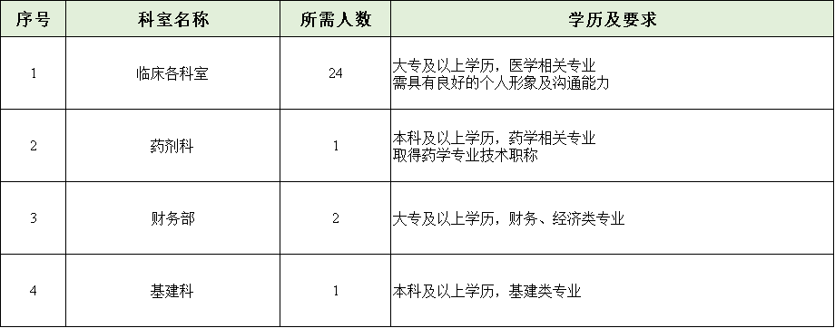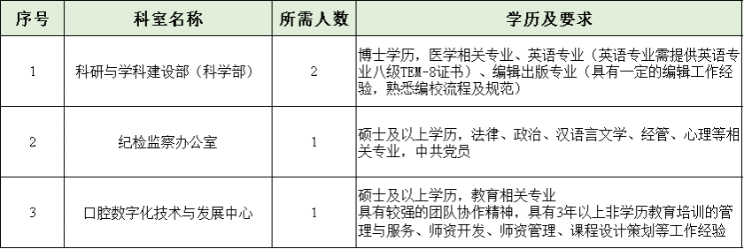根據(jù)我院學(xué)科發(fā)展規(guī)劃,現(xiàn)面向社會公開招聘各崗位,招聘對象為普通高等院校相關(guān)專業(yè)應(yīng)、往屆畢業(yè)生,具體招聘崗位及要求詳見表格。