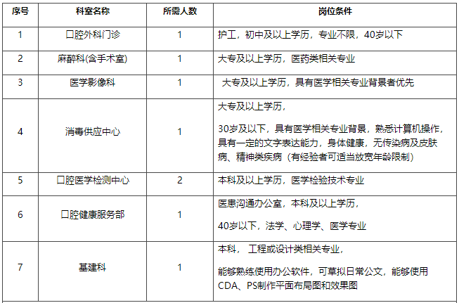 3.表格所要求崗位中博士年齡不超過(guò)35歲,其他崗位年齡不超過(guò)30歲(護(hù)崗不超過(guò)25歲,二本及以上,非專升本)。年齡計(jì)算截止時(shí)間2021年11月30日。條件優(yōu)秀者,可適當(dāng)放寬年齡限制;