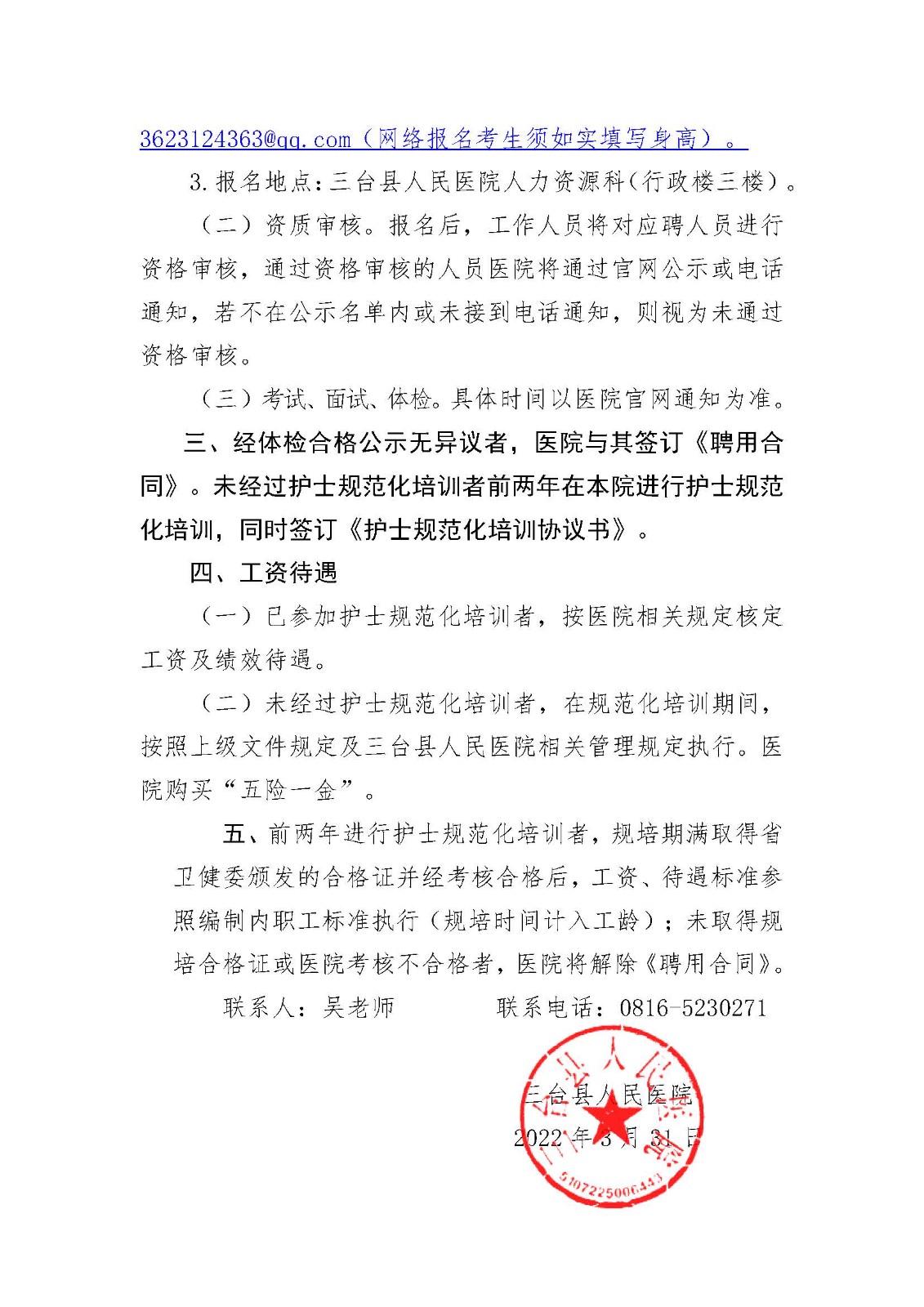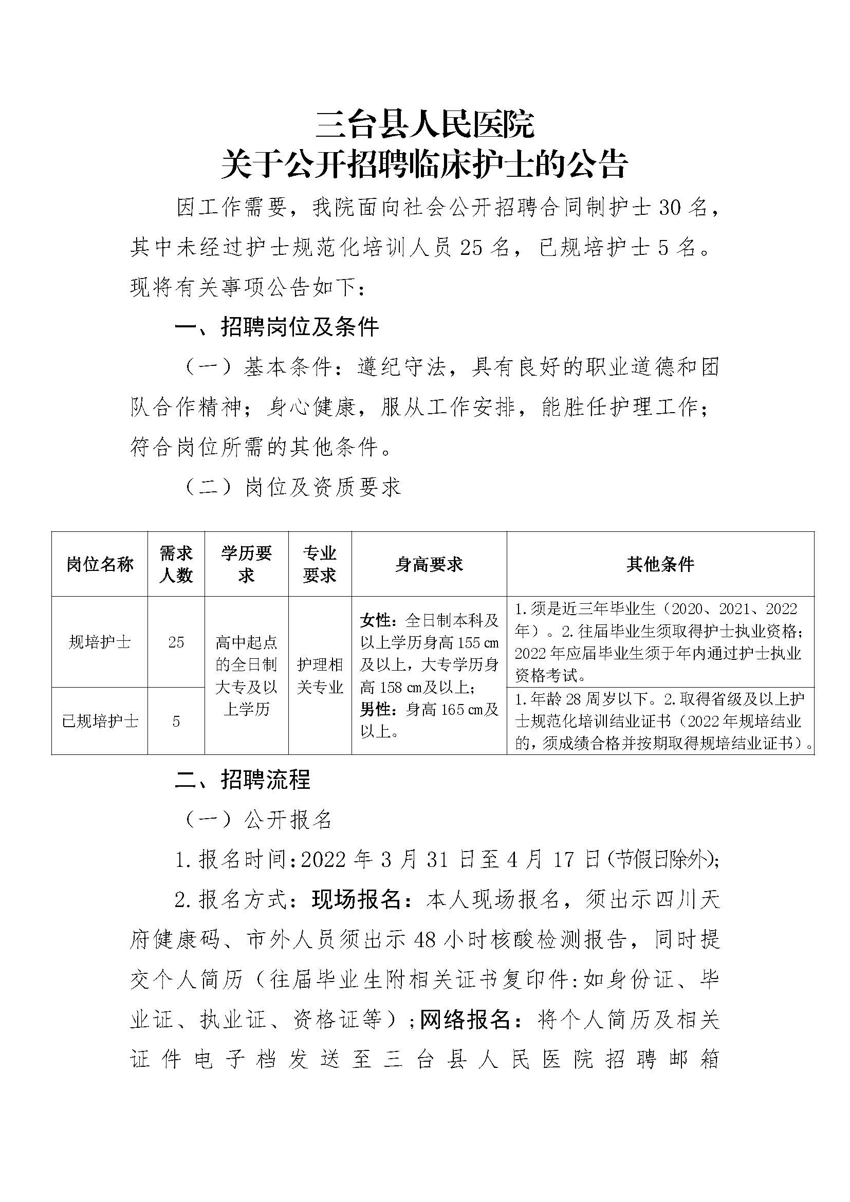 四川省綿陽市三臺縣人民醫(yī)院招聘合同制護(hù)士30名