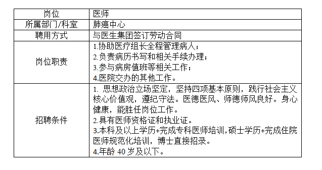 四川大學(xué)華西醫(yī)院肺癌中心招聘醫(yī)師1名