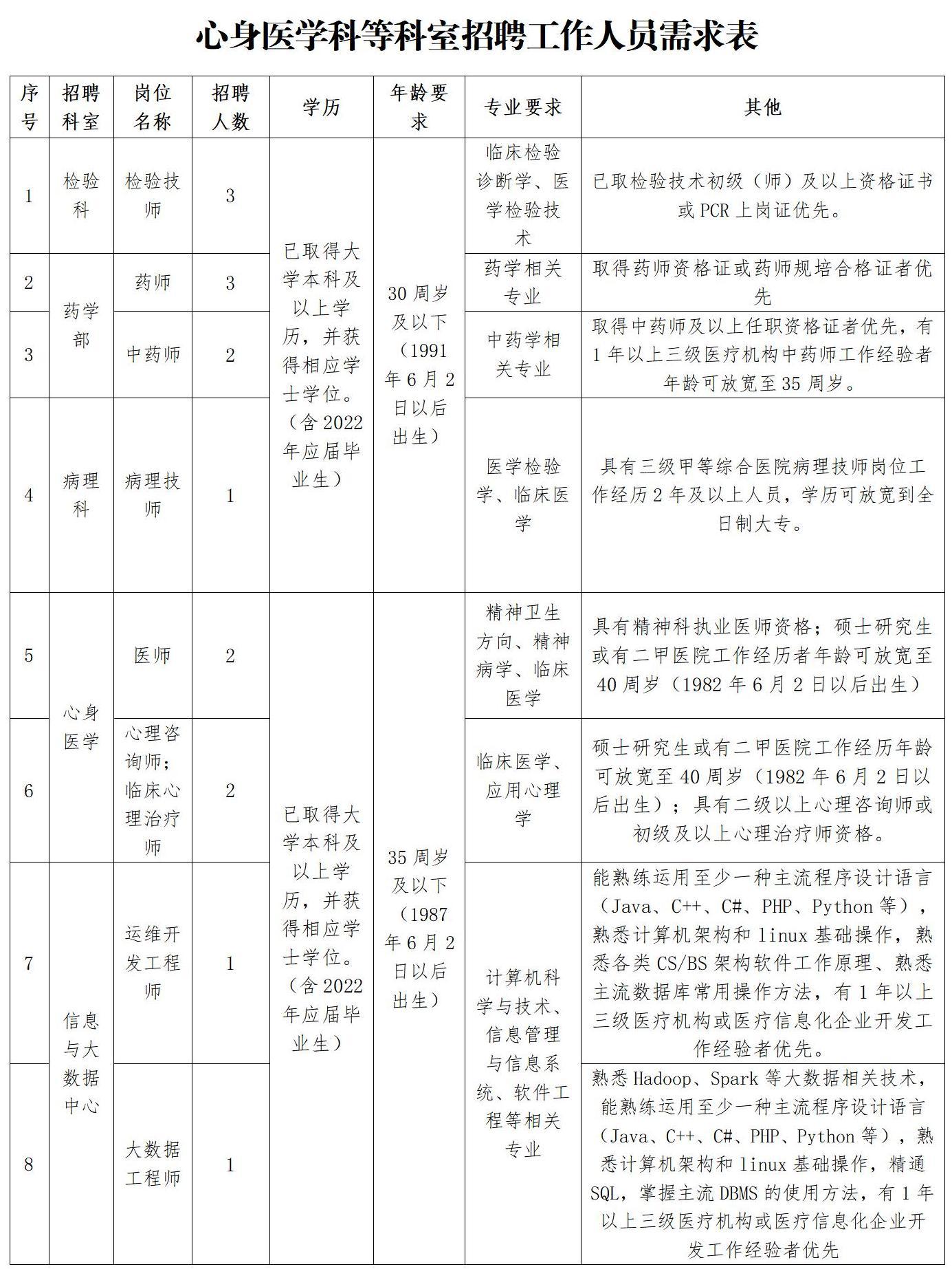 您是即將步入醫(yī)療行業(yè)的相關(guān)從業(yè)者嗎?您還在為在哪里能夠看到醫(yī)療崗位招聘信息而煩惱嗎?您還在擔(dān)心看不到所在地區(qū)全面的醫(yī)療招聘公告信息嗎?小編告訴您一個(gè)好消息,醫(yī)學(xué)教育網(wǎng)為了服務(wù)廣大醫(yī)學(xué)崗位人員,每天特意整理搜集全國(guó)各地醫(yī)療招聘公告信息,以下就是新鮮的公告通知:四川省遂寧市第一人民醫(yī)院2022年招聘非在編工作人員15人,歡迎查看。