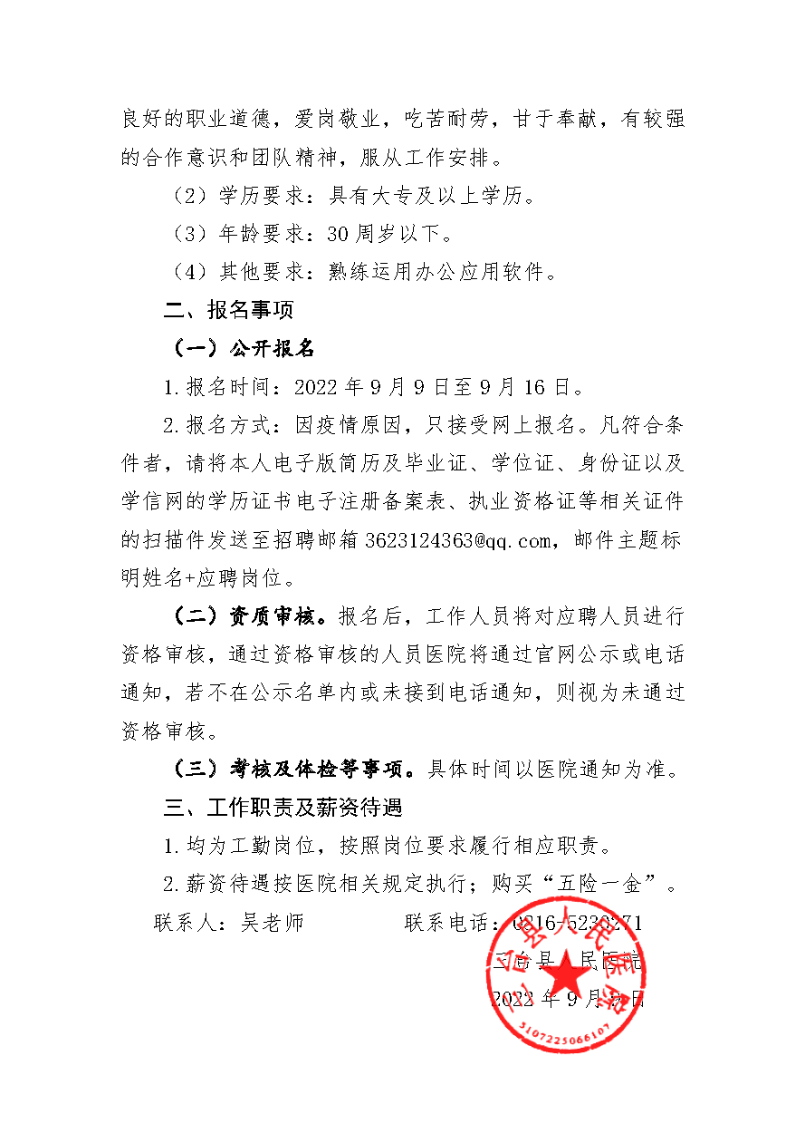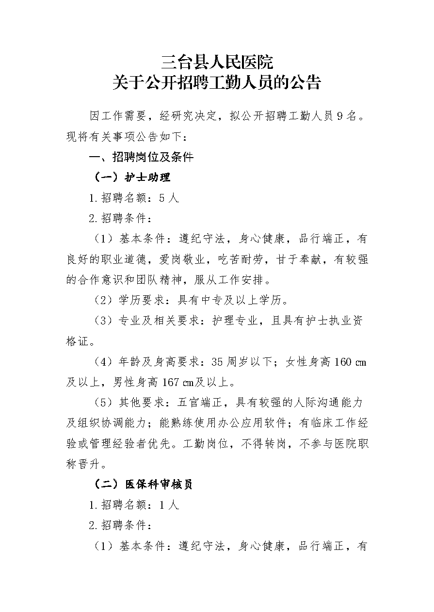 四川省綿陽市三臺縣人民醫(yī)院招聘工勤人員9名