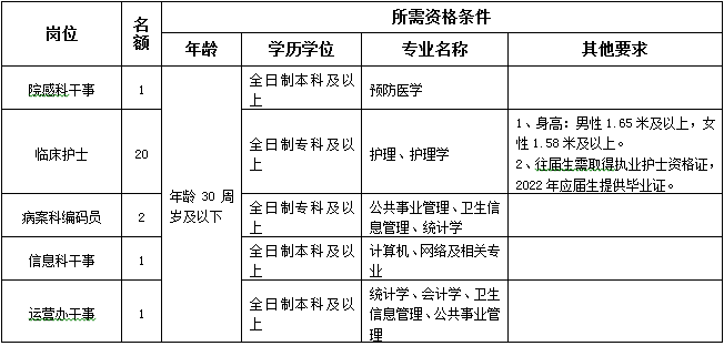 三、2022年3月公開招聘編外人員空缺崗位補招及資格條件