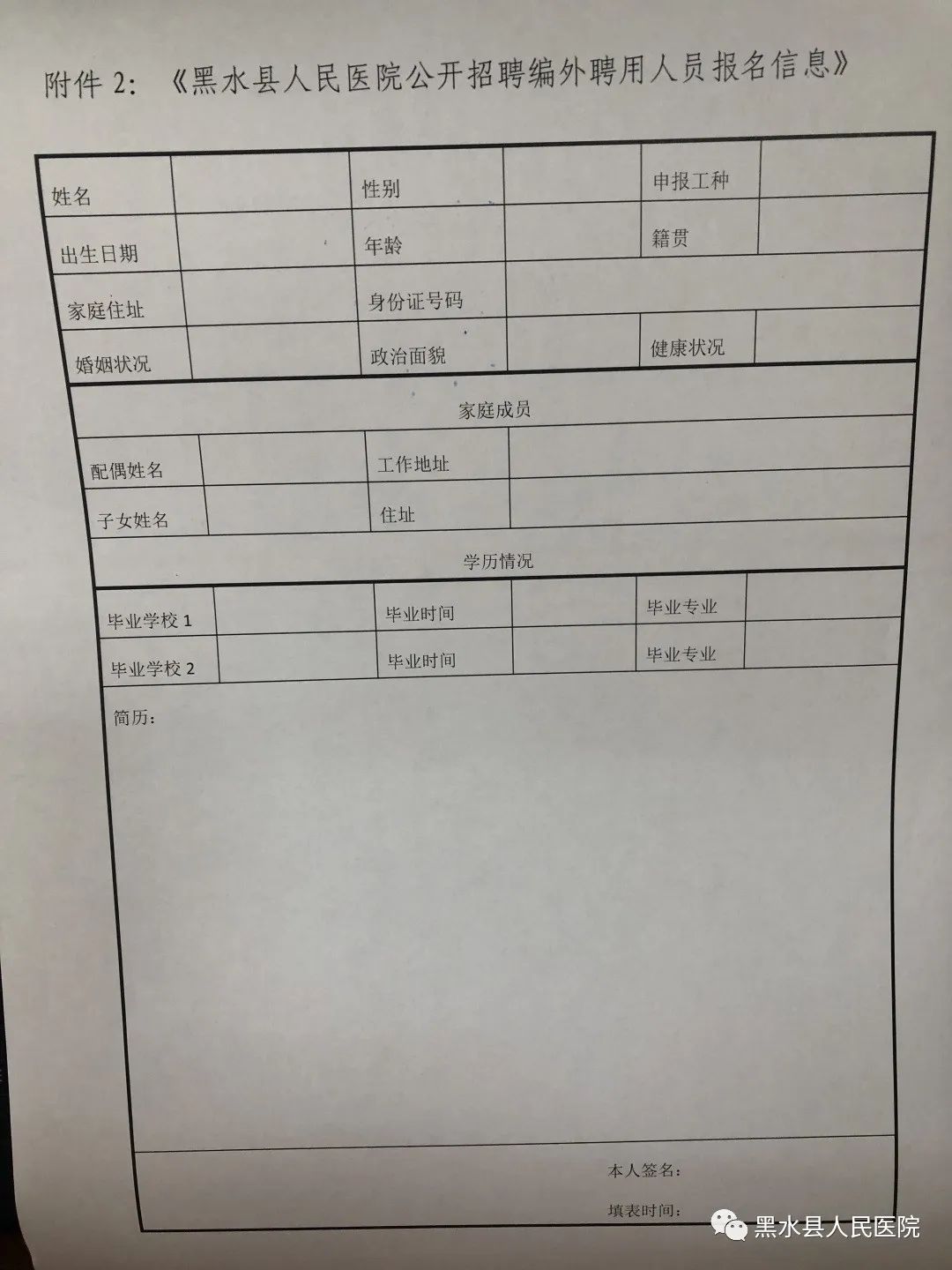 具體崗位、名額見《黑水縣人民醫(yī)院公開招聘編外聘用人員崗位和條件要求一覽表》(附件1)。