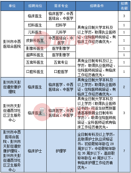 四川省成都市彭州市中西醫(yī)結(jié)合醫(yī)院2022年招聘工作人員22人
