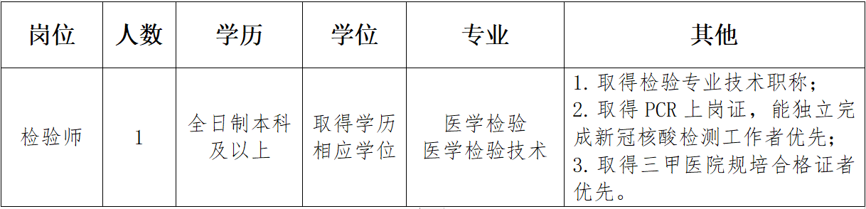 很多即將步入醫(yī)療崗位的朋友們都非常關(guān)注所在地區(qū)醫(yī)療崗位的招聘公告信息,醫(yī)學(xué)教育網(wǎng)醫(yī)療衛(wèi)生招聘欄目為了更好的服務(wù)正在找工作的醫(yī)療相關(guān)專業(yè)人員,每天為大家整理搜集新鮮的各地醫(yī)療衛(wèi)生系統(tǒng)/醫(yī)院等招聘公告通知和信息,歡迎大家查看!以下是公告通知:四川省綿陽市婦幼保健院2022年11月緊急招聘檢驗(yàn)師1名,內(nèi)容如下: