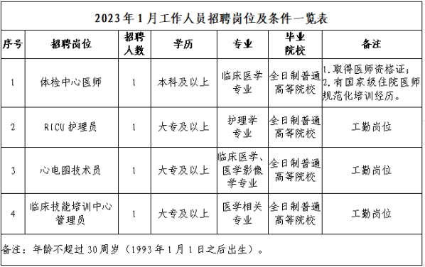 四川省廣元市中心醫(yī)院2023年1月招聘工作人員4人