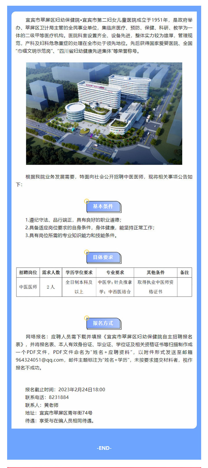 四川省宜賓市翠屏區(qū)婦幼保健院自主招聘中醫(yī)醫(yī)師2名