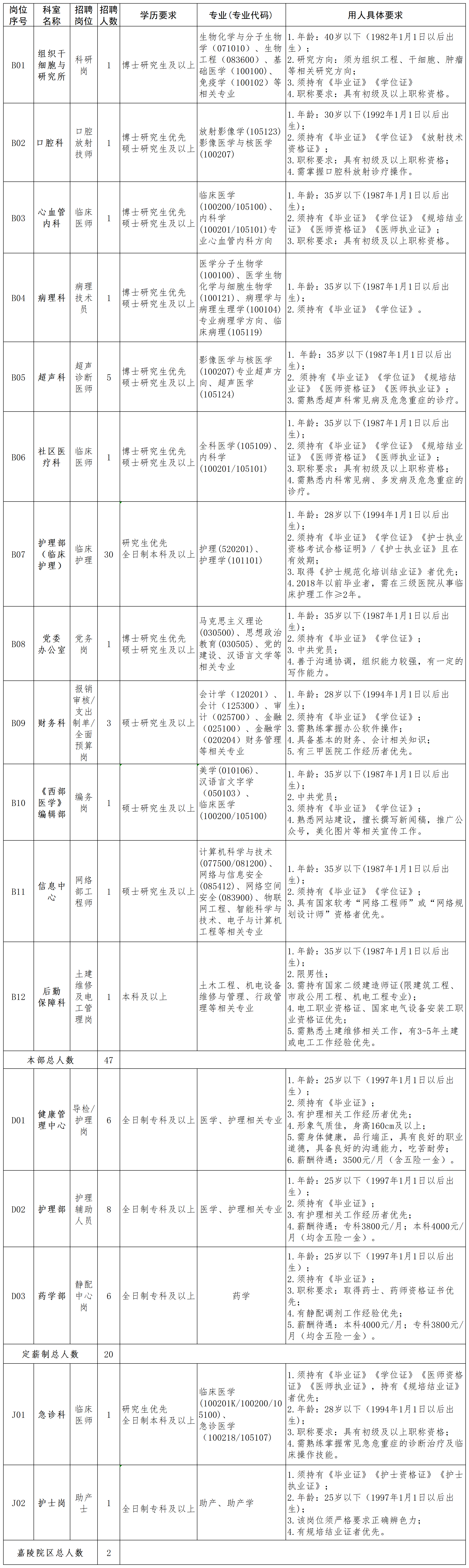 南充市中心醫(yī)院(含嘉陵院區(qū))2023年引進高學(xué)歷專業(yè)技術(shù)人才69人