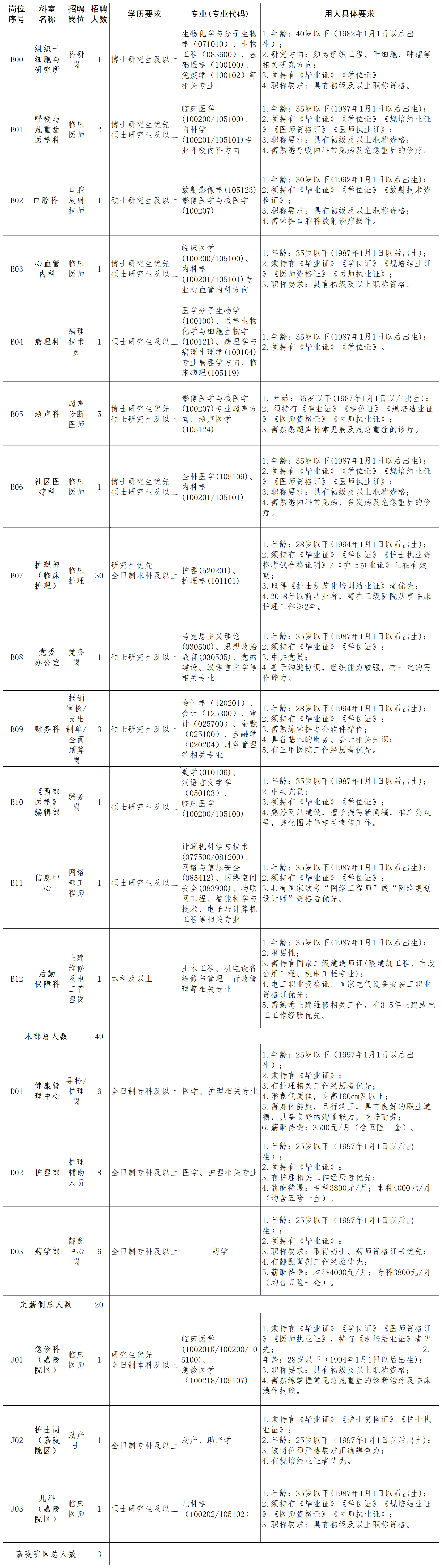 四川省南充市中心醫(yī)院2023年引進(jìn)高學(xué)歷專業(yè)技術(shù)人才72人