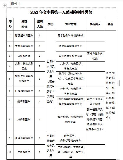 四川省成都市金堂縣第一人民醫(yī)院2023年自主招聘臨床醫(yī)生13名