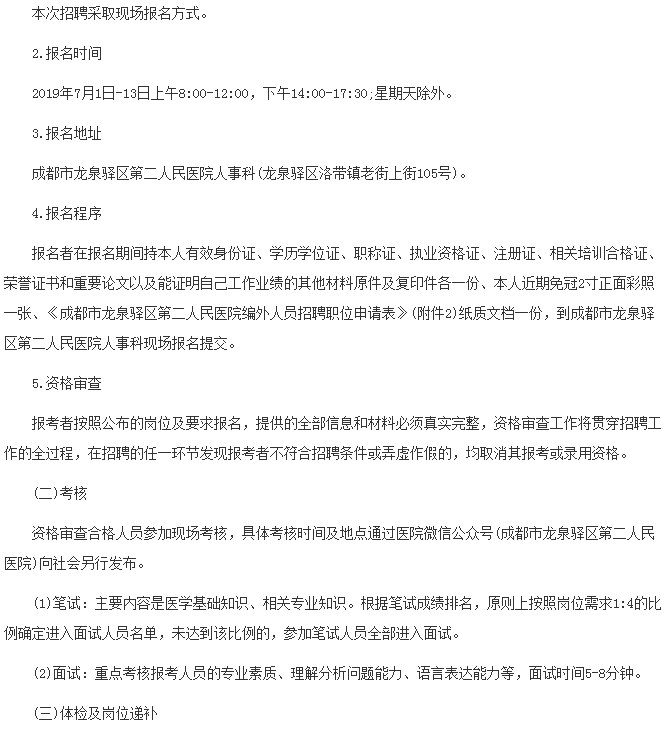 - · 2019成都市龍泉驛區(qū)第二人民醫(yī)院招聘16人公告