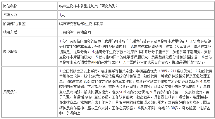 四川大學(xué)華西醫(yī)院臨床研究管理部生物樣本庫2019年8月招聘人員啟事發(fā)布啦!很多朋友對(duì)此非常關(guān)注,醫(yī)學(xué)教育網(wǎng)小編專門為大家搜集整理了如下內(nèi)容,希望可以有所幫助。