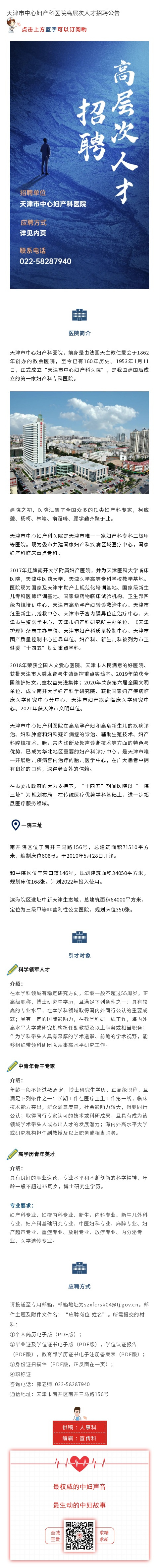 天津市中心婦產(chǎn)科醫(yī)院高層次人才招聘公告