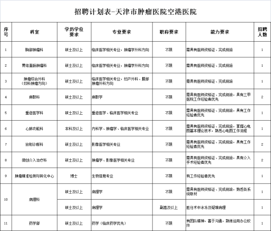 天津市腫瘤醫(yī)院空港醫(yī)院招聘醫(yī)療、藥師、科研崗15人