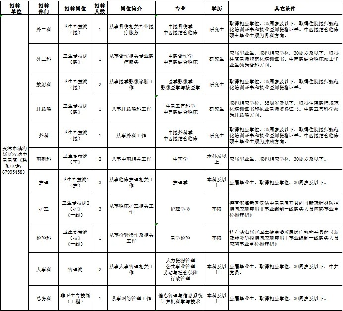 天津市濱海新區(qū)漢沽中醫(yī)醫(yī)院2024年招聘在編工作人員18人