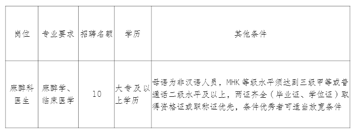 新疆喀什地區(qū)莎車縣人民醫(yī)院2023年招聘麻醉科醫(yī)生10人