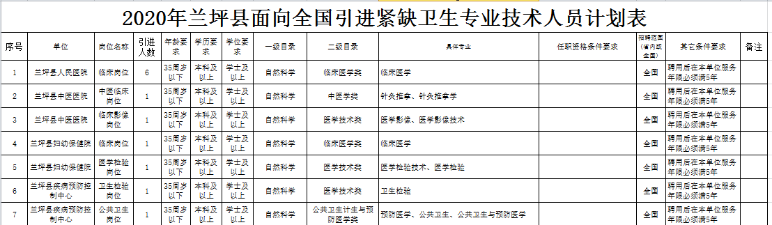 云南省蘭坪縣2020年面向全國引進(jìn)緊缺衛(wèi)生專業(yè)技術(shù)人員啦