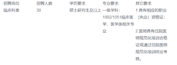 3.崗位有“取得住院醫(yī)師規(guī)范化培訓合格證”要求的,已通過住院醫(yī)師規(guī)范化培訓結業(yè)考核,尚未取得相應證書的,提交考試合格證明材料視為具有住院醫(yī)師規(guī)范化培訓合格證,若崗位涉及部分專業(yè)未開展住院醫(yī)師規(guī)范化培訓的,可不作要求。