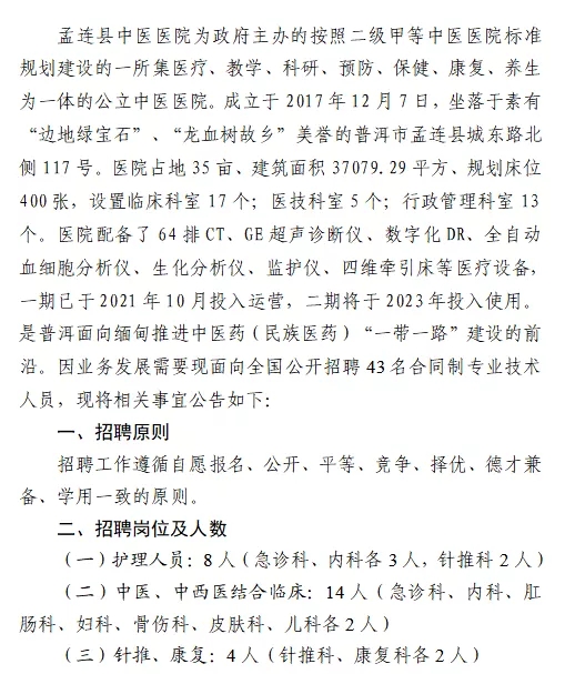 云南省普洱市孟連縣中醫(yī)醫(yī)院招聘合同制工作人員43名
