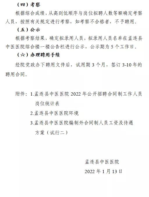 醫(yī)學(xué)教育網(wǎng)醫(yī)療衛(wèi)生招聘欄目每天都會更新全國各地新鮮招聘公告信息,致力于為廣大即將進(jìn)入醫(yī)療衛(wèi)生系統(tǒng)/醫(yī)院/醫(yī)療事業(yè)單位的工作人員進(jìn)行服務(wù),以上就是醫(yī)學(xué)教育網(wǎng)小編為大家整理的:云南省普洱市孟連縣中醫(yī)醫(yī)院招聘合同制工作人員43名,希望能夠幫助到大家。