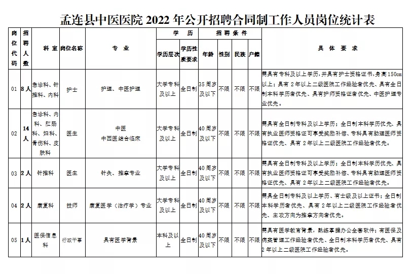 - · 景東彝族自治縣中醫(yī)醫(yī)院2024年度招聘編外工作人員14人