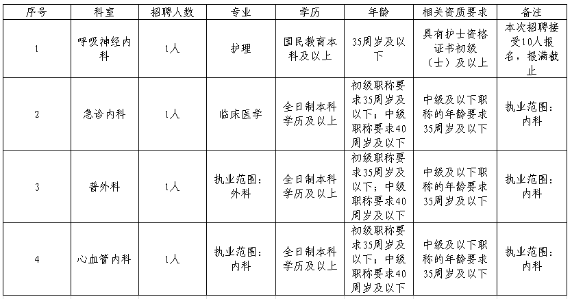 2.醫(yī)師中級(jí)及以下職稱的年齡要求35歲及以下,1987年1月1日以后出生;護(hù)理人員年齡要求35周歲以下,1987年1月1日以后出生;