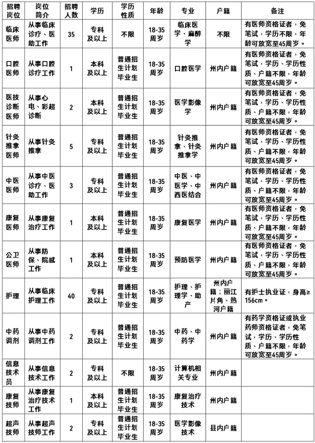 2.中級(jí)職稱及以上人員,待遇按醫(yī)院相關(guān)規(guī)定執(zhí)行 。