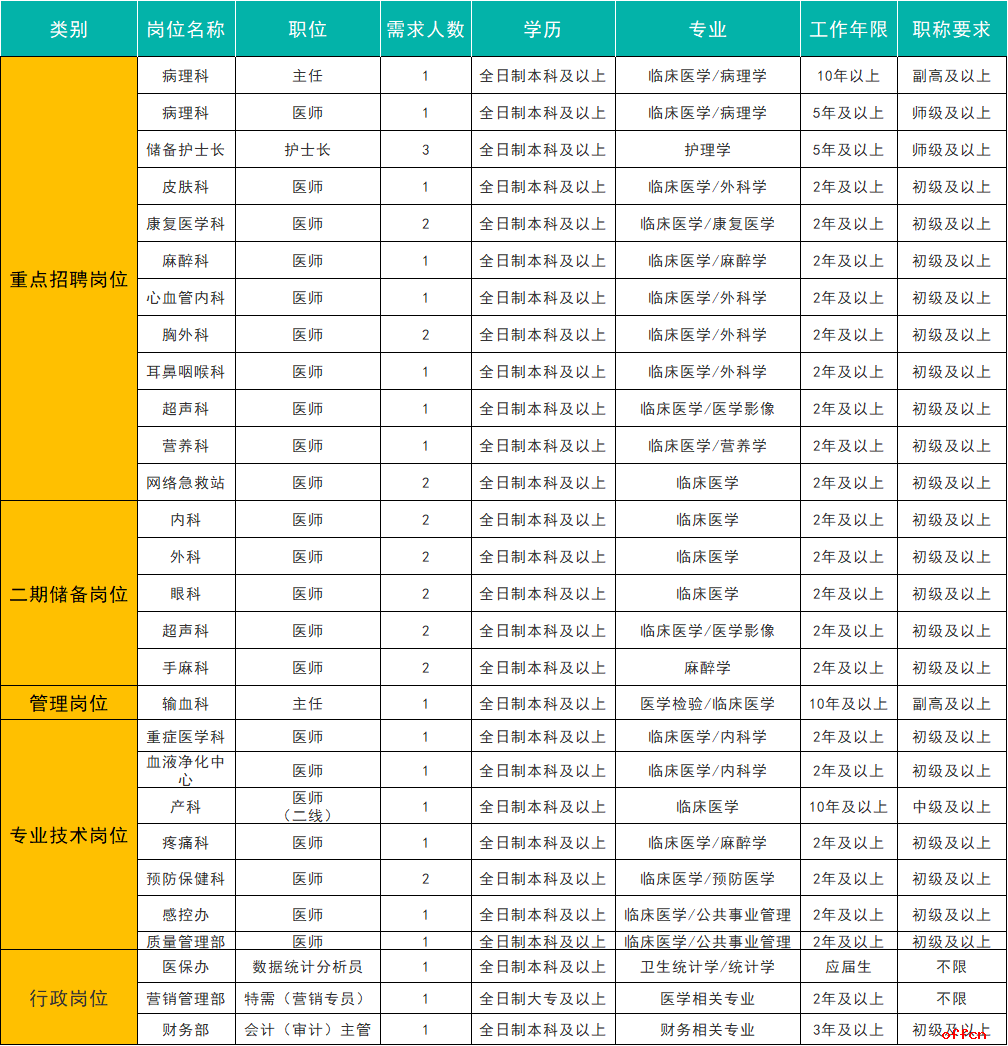 1、住院醫(yī)師:年齡30周歲及以下,碩士研究生學(xué)歷可放寬至35歲及以下;