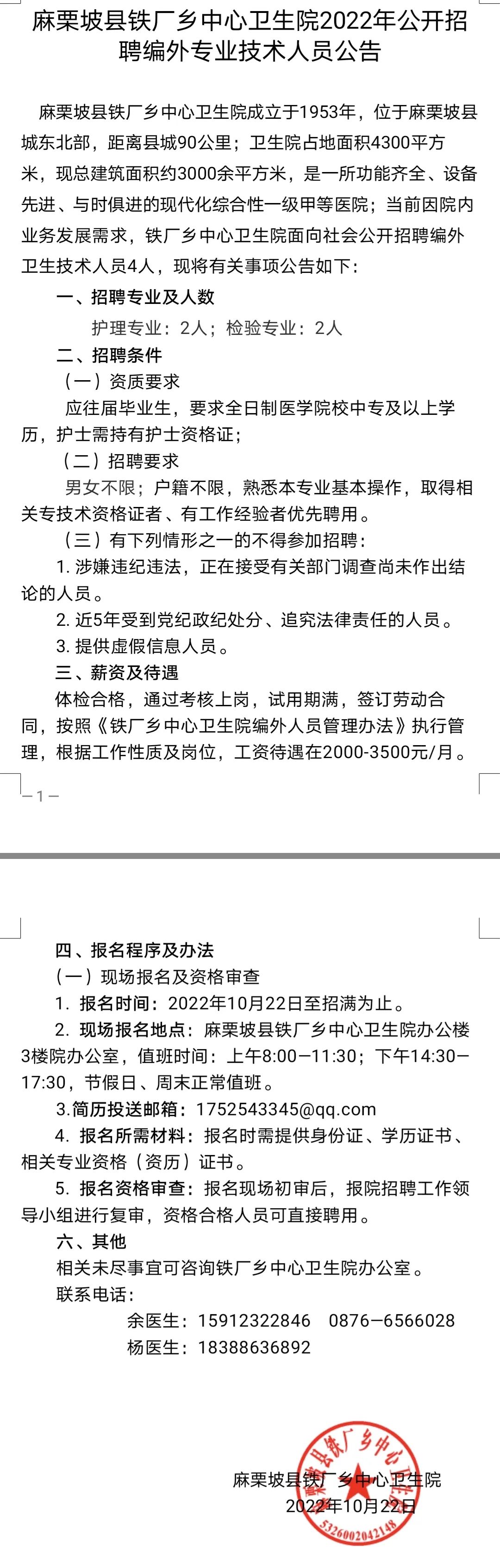 云南省文山州麻栗坡縣鐵廠鄉(xiāng)中心衛(wèi)生院2022年招聘專業(yè)技術(shù)人員4人