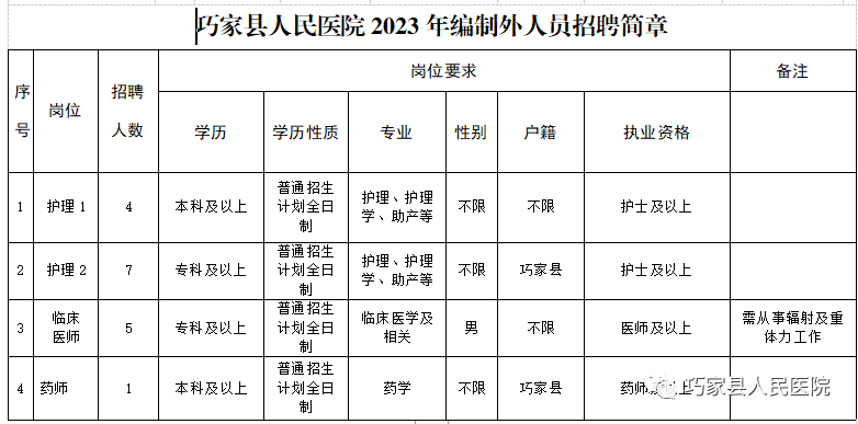 護理1、臨床醫(yī)師崗位不限戶籍,其他崗位戶籍限昭通市巧家縣戶籍。