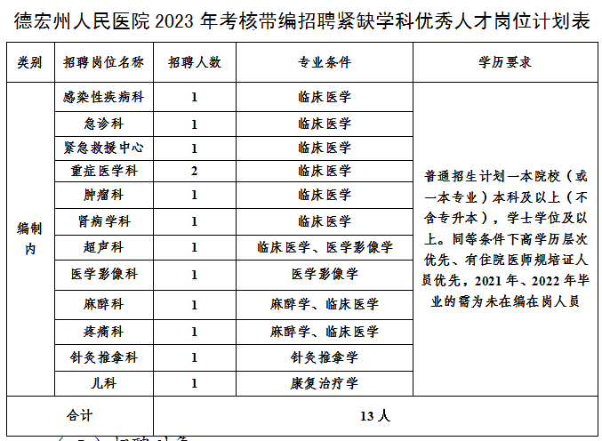 云南省德宏州人民醫(yī)院2023年招聘緊缺專業(yè)學(xué)科優(yōu)秀人才13人