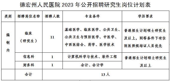 云南省德宏州人民醫(yī)院2023年招聘研究生崗位13人