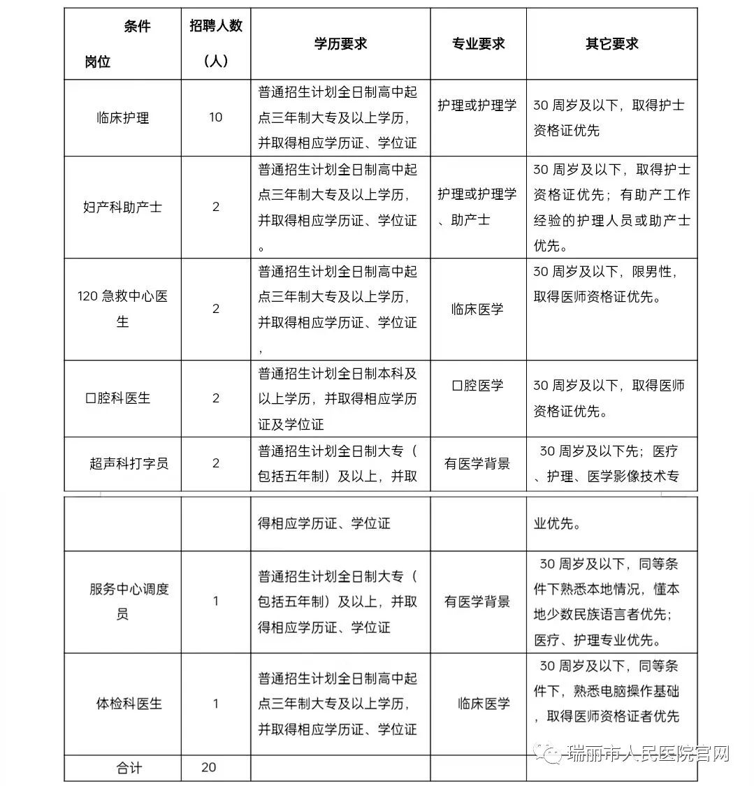 云南省德宏州瑞麗市人民醫(yī)院2023年招聘合同制聘用人員20名