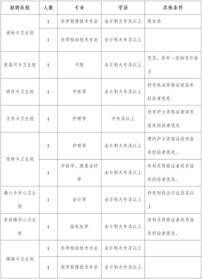 (五)公示:根據(jù)體檢結(jié)果,確定擬聘用人員,擬聘用人員名單在各鄉(xiāng)鎮(zhèn)衛(wèi)生院公示欄進(jìn)行公示,公示期為5個(gè)工作日。