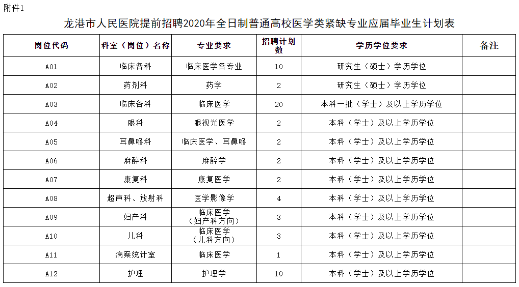 ⑴《龍港市人民醫(yī)院提前招聘2020年全日制普通高校醫(yī)學(xué)類(lèi)緊缺專(zhuān)業(yè)應(yīng)屆畢業(yè)生報(bào)名表》(附件2)一份;