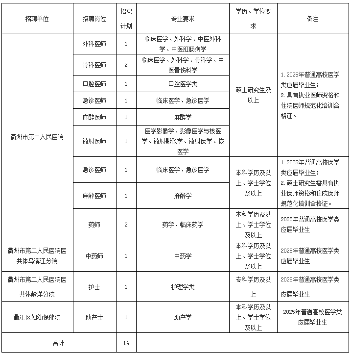 衢州市衢江區(qū)衛(wèi)生健康系統(tǒng)赴皖南醫(yī)學院招聘2025年普通高校優(yōu)秀應屆畢業(yè)生14名