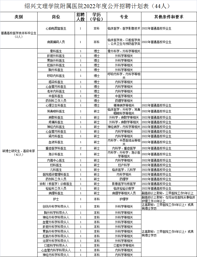 2022年度線上招聘紹興文理學(xué)院附屬醫(yī)院共招聘44名工作人員,均為正式在編人員(按事業(yè)編制報備員額管理)。具體招聘崗位、人數(shù)以及應(yīng)聘人員的專業(yè)、學(xué)歷等資格條件詳見附件。