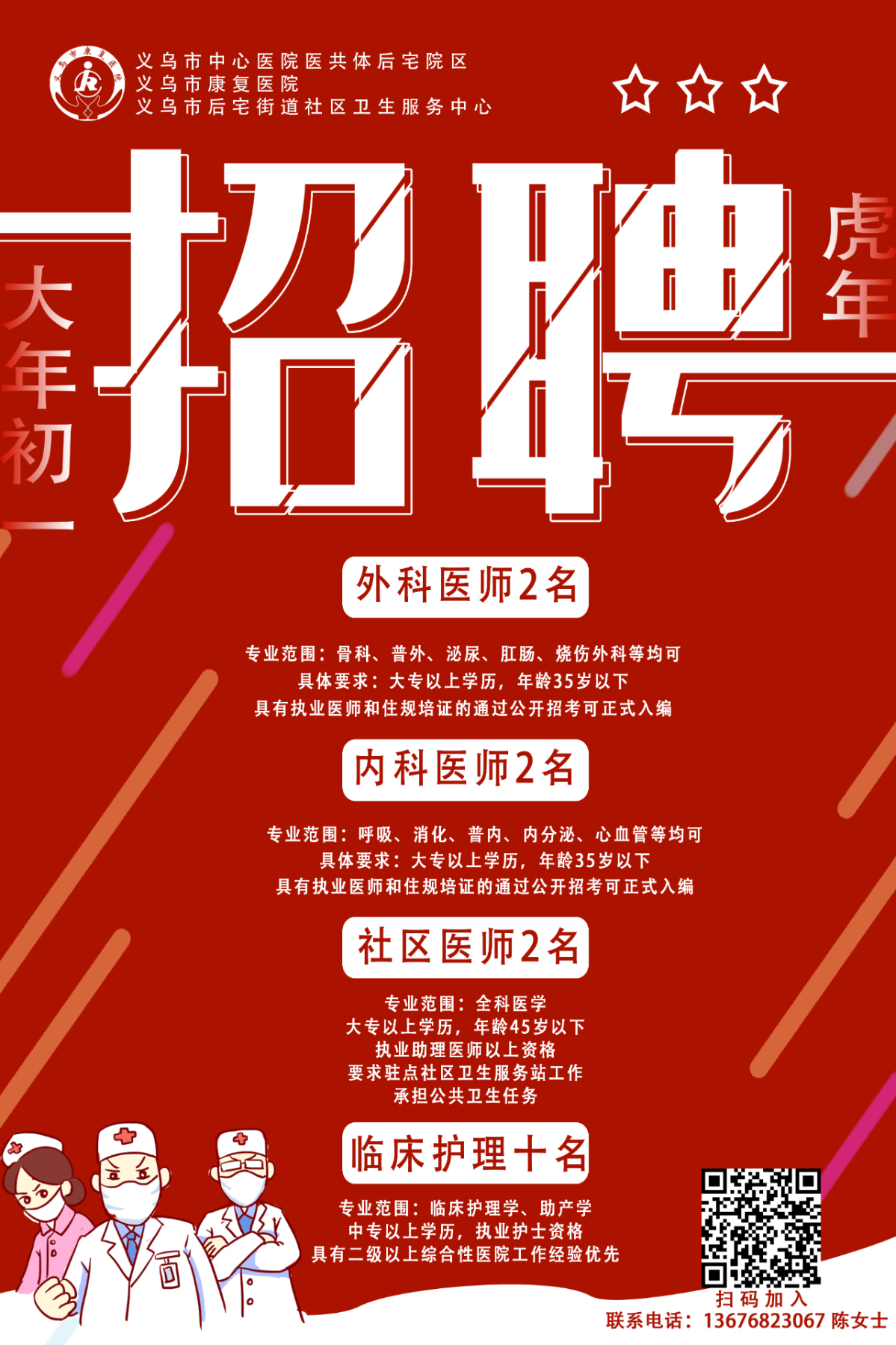 浙江省義烏市康復(fù)醫(yī)院2022年醫(yī)師、護(hù)理招聘公告