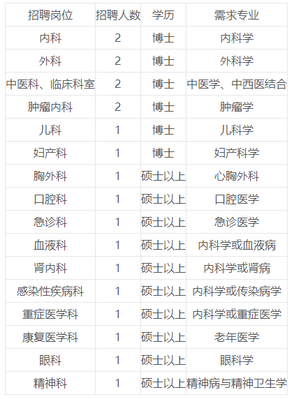很多即將步入醫(yī)療崗位的朋友們都非常關(guān)注所在地區(qū)醫(yī)療崗位的招聘公告信息,醫(yī)學教育網(wǎng)醫(yī)療衛(wèi)生招聘欄目為了更好的服務(wù)正在找工作的醫(yī)療相關(guān)專業(yè)人員,每天為大家整理搜集新鮮的各地醫(yī)療衛(wèi)生系統(tǒng)/醫(yī)院等招聘公告通知和信息,歡迎大家查看!以下是公告通知:浙江省金華市永康市中醫(yī)院引進事業(yè)編制醫(yī)務(wù)人員6名,內(nèi)容如下: