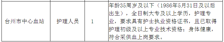 浙江省臺(tái)州市中心血站招聘編制外護(hù)理工作人員1名