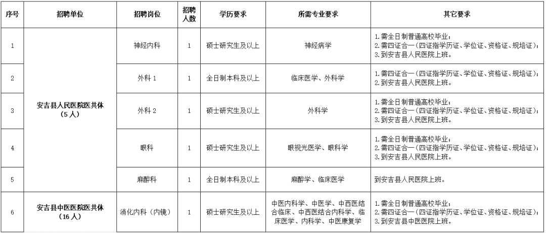 4.臨床醫(yī)學(xué)、中醫(yī)學(xué)、預(yù)防醫(yī)學(xué)、麻醉學(xué)、醫(yī)學(xué)影像學(xué)、心電圖、病理、醫(yī)學(xué)技術(shù)等緊缺急需專業(yè)畢業(yè)生,愿意從事臨床和醫(yī)技崗位的全日制普通高校醫(yī)學(xué)類本科及以上學(xué)歷2021年、2022年畢業(yè)生;