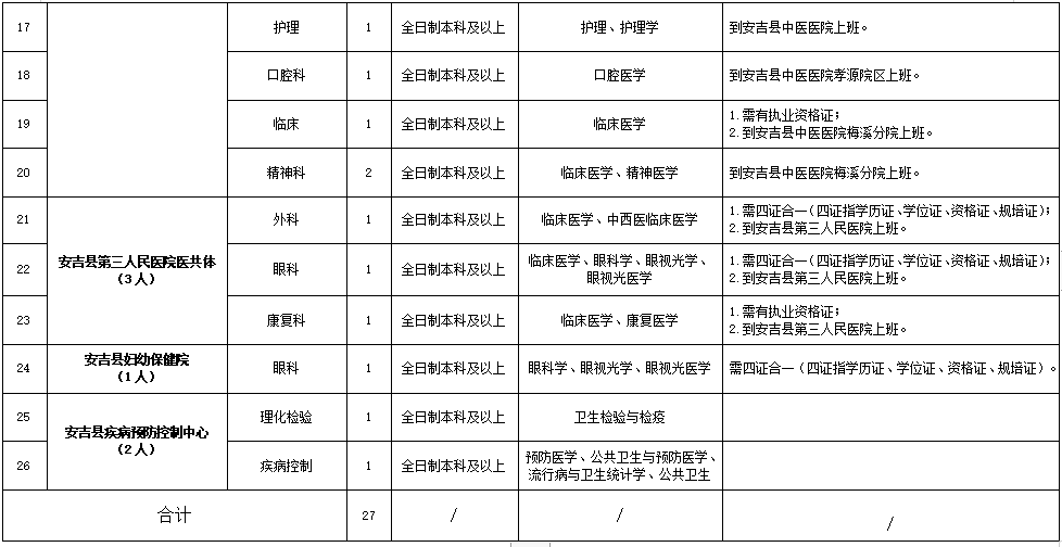 湖州市安吉縣衛(wèi)健系統(tǒng)下屬事業(yè)單位2022年招聘醫(yī)療衛(wèi)生專業(yè)人員27名
