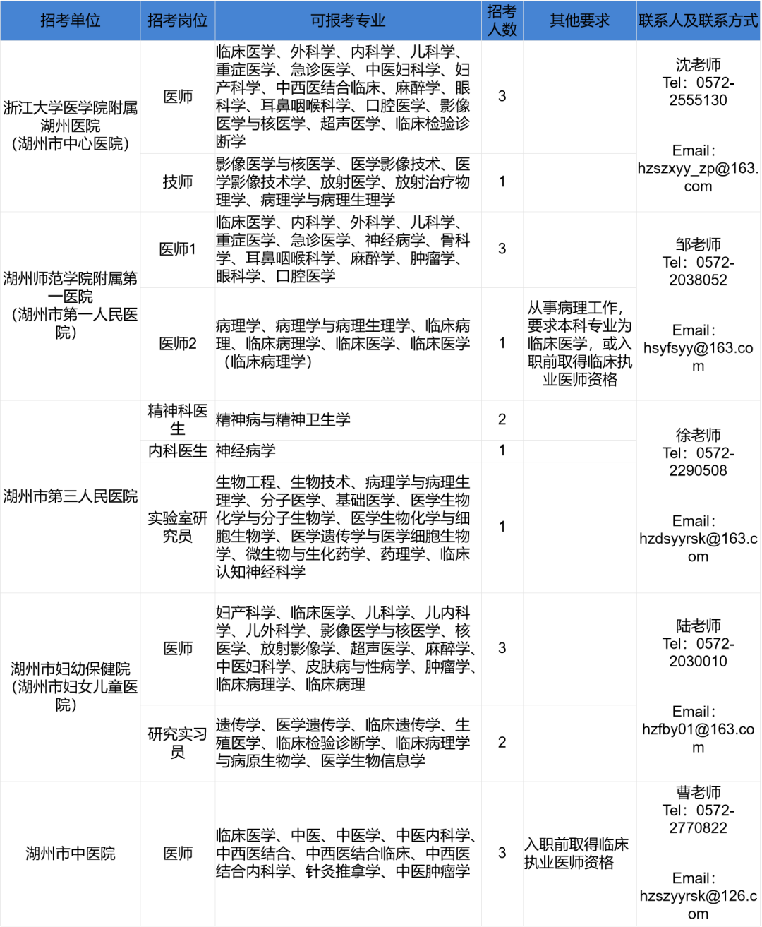 2.報考人員為優(yōu)秀博士研究生的,經(jīng)招聘單位和湖州市衛(wèi)生健康委員會研究同意,可不受本公告計劃的限制。