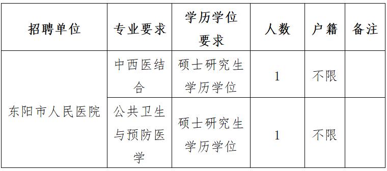 浙江省金華市東陽(yáng)市人民醫(yī)院2022年11月招聘碩士及以上研究生2名