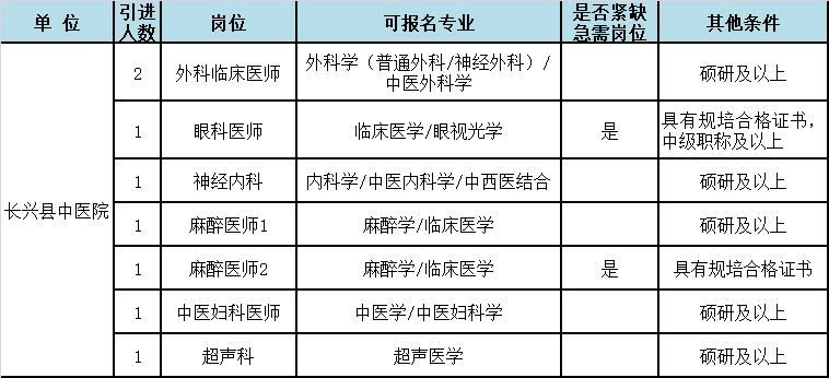 湖州市長(zhǎng)興縣中醫(yī)院招聘優(yōu)秀衛(wèi)生人才和緊缺急需崗位衛(wèi)生人才8名